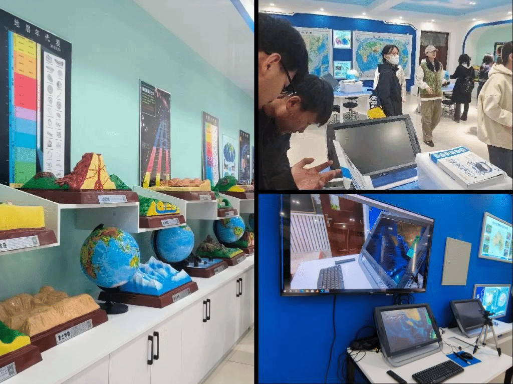 随后,同学们参观了地理教室、科技馆和创客中心。BB贝博艾弗森原官方网站附属中学的地理教室,遵循教育部《中学地理专用教室建设规范》,以数字化教育教学装备为依托,教室置备了数字地球仪、AR地理沙盘、语音立体地形图等数字化设备和各类教具模型,把数字化与虚拟现实技术融入了传统教学。见习生真正领悟了“数学化地理教室赋能地理教学”的重要性,见习生观察到有序的教育和学习环境,从而增强了职业认同感。