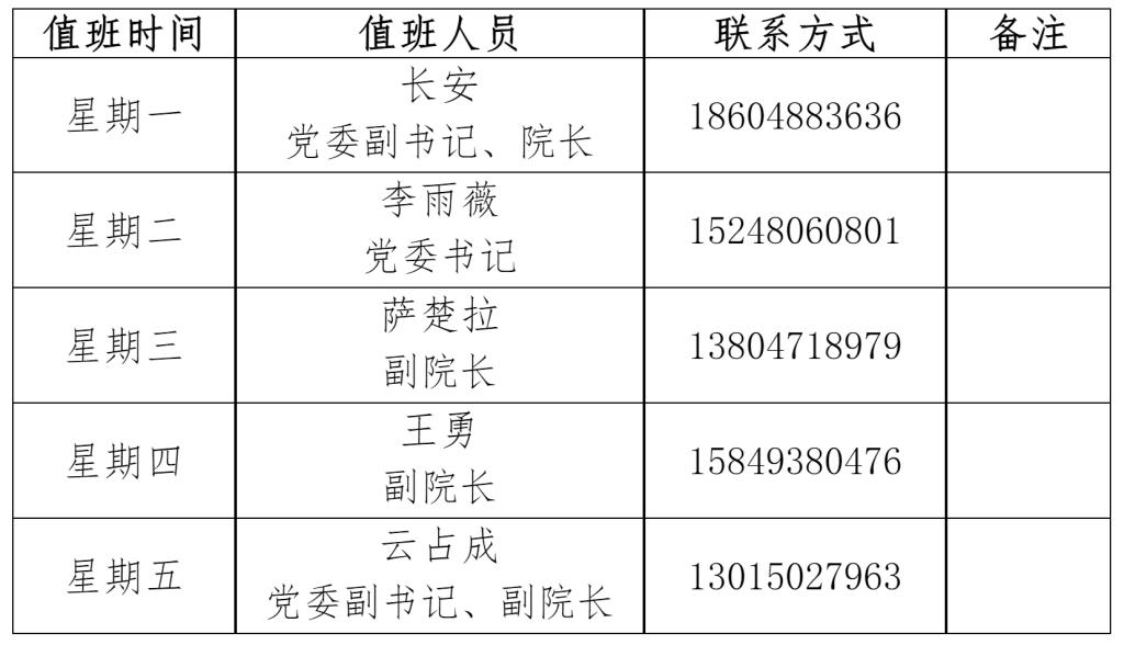 2. 值班地点:值班人员盛乐校区创业楼办公地点,如有日期及地点调整需提前报备学院综合办公室;