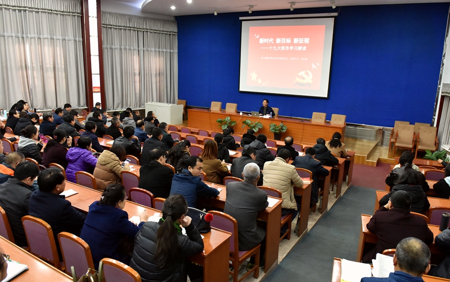 11月15日,校党委副书记、纪委书记高云峰应邀为贝博官网党政机关党总支、教育科学学院党总支、公共管理学院党总支、BB贝博艾弗森原官方网站党总支、后勤机关党总支、盛乐后勤服务集团党总支等六个党总支作了题为《新时代 新目标 新征程——党的十九大报告学习解读》的报告,贝博官网由张裕凤党总支副书记(主持工作)出席了本次报告。
