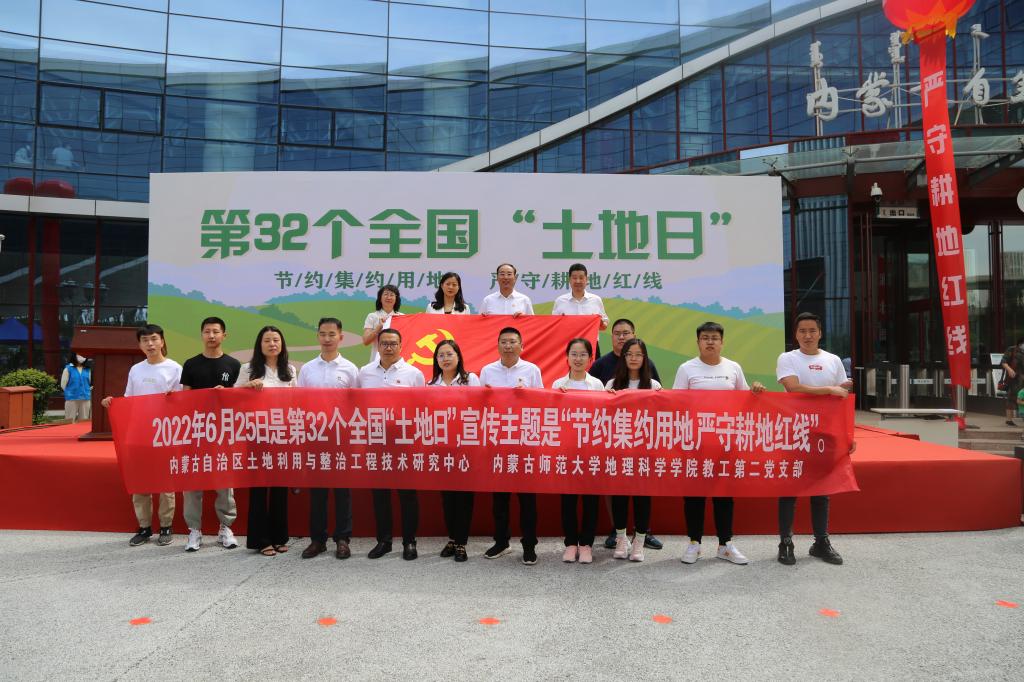2022年6月25日在内蒙古自然博物馆隆重举行本次宣传大会。大会由内蒙古自然资源厅主办,内蒙古土地学会承办。自治区自然资源厅一级巡视员、内蒙古土地学会理事长王富友,自然资源厅党组成员、副厅长郭心语,内蒙古国土空间规划院党委书记、院长杨俊杰以及各高校知名专家学者应邀出席开幕仪式。BB贝博艾弗森原官方网站党委书记、内蒙古土地学会副理事长张裕凤教授参加了开幕仪式。贝博官网教工第二党支部与内蒙古自治区土地学会党支部等联合开展“土地日”主题党日活动。教工第二党支部教师张惜伟、王考、黄晓君、叶志刚和国土资源系主任周瑞平老师、还有研究生同学代表一同参加本次大会。