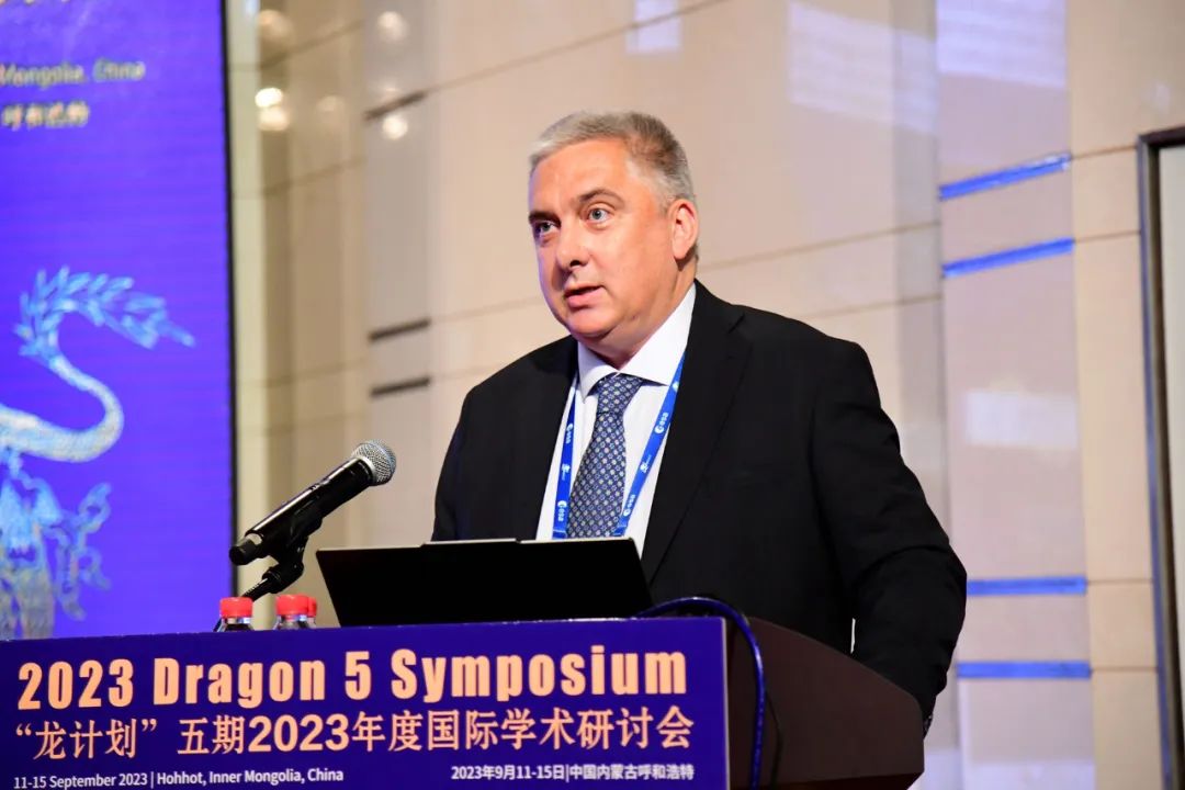 “龙计划”中欧项目协调人李增元和埃里克·道尔作了“龙计划”五期合作进展报告。“龙计划”中欧办公室成员法布里奇奥·拉莫伊诺和孙斌介绍了本次会议安排。中国科学院地理科学与资源研究所博士生导师、中国科学院院士周成虎以视频录制形式作了中国对地观测任务及应用报告。欧洲空间局科学、应用和气候部门主管鲁尼·弗莱博哈根作了欧洲对地观测任务及应用报告。
