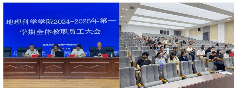 2024年8月24日上午,贝博官网新学期第一次全体教职工大会在盛乐校区地理楼报告厅顺利召开。会议由李雨薇书记主持,学院领导班子和全体教师参加会议,为新学期各项工作的有序开展奠定了坚实的基础。