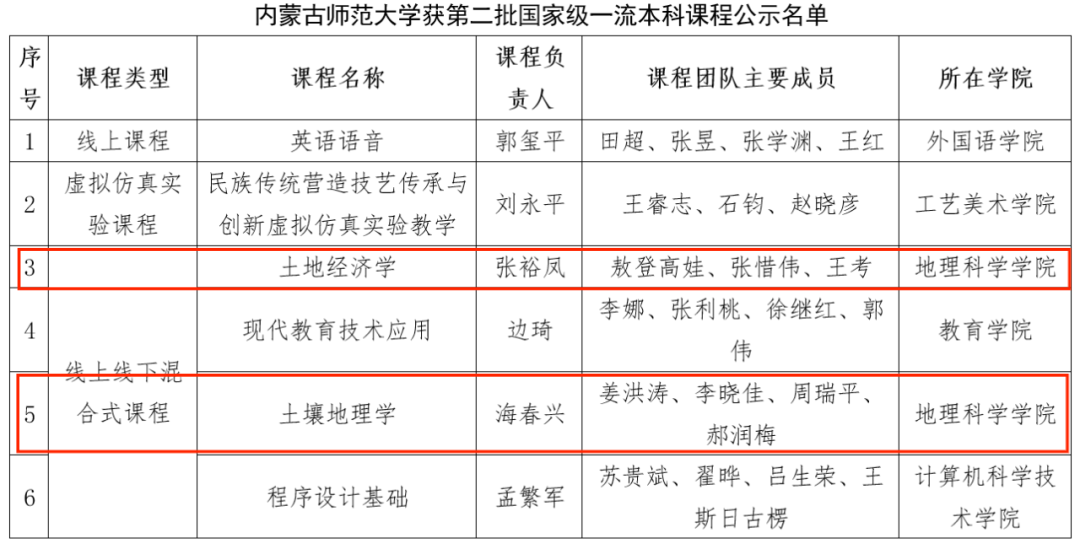 4月11日,教育部公示了第二批国家级一流本科课程认定结果,全区共有54门课程进入公示名单,贝博官网10门课程成功入选,其中包括贝博官网“土地经济学”、“土壤地理学”等2门课程,入选课程数量位居全校第一,充分彰显了学院在课程建设中持续投入与改进所取得的成效。