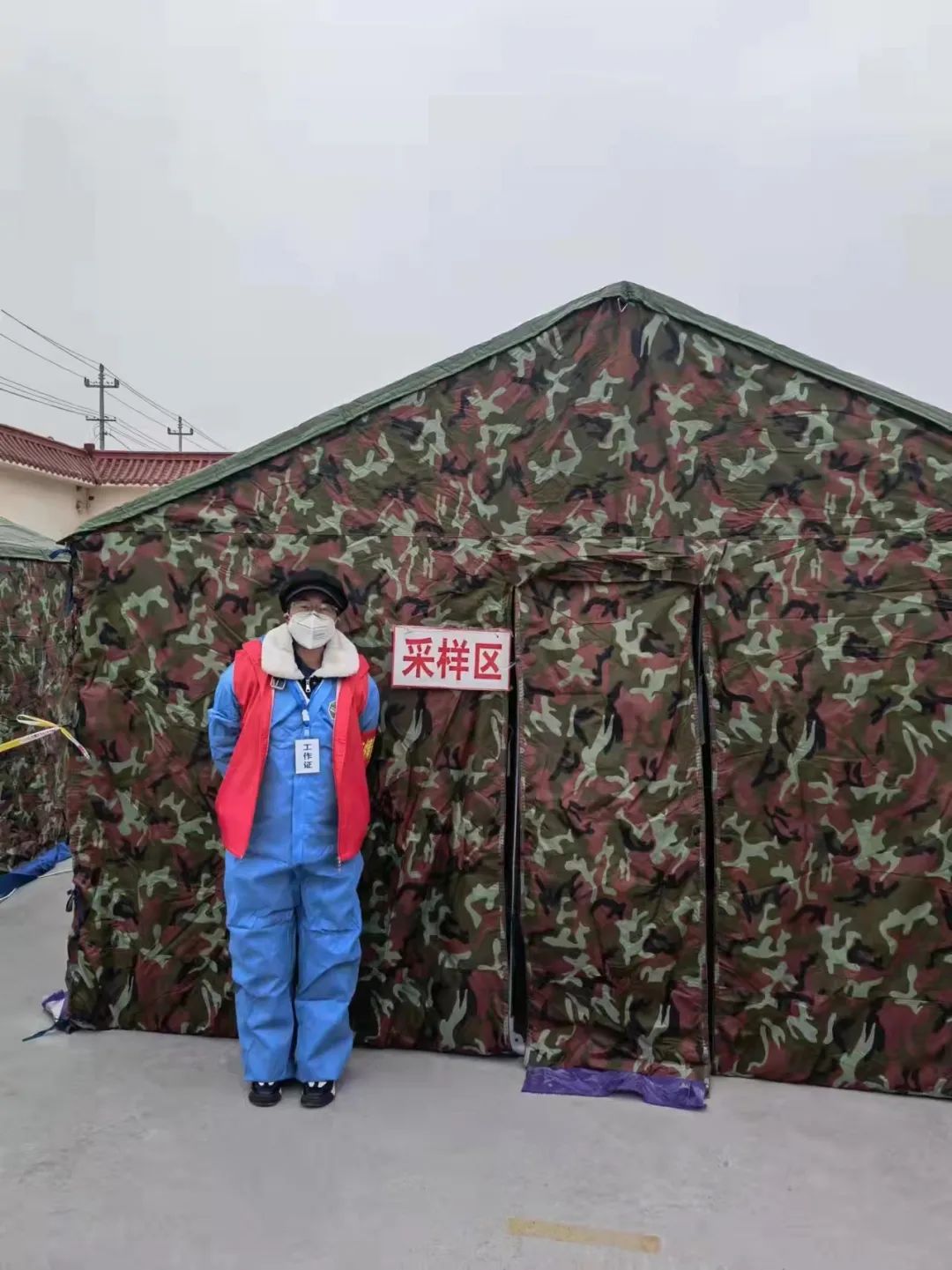 付思蕊 2021级地理科学汉授三班 在天津市北辰区西头镇姚庄子村维持现场秩序,录入人员信息。